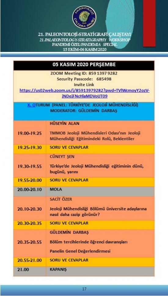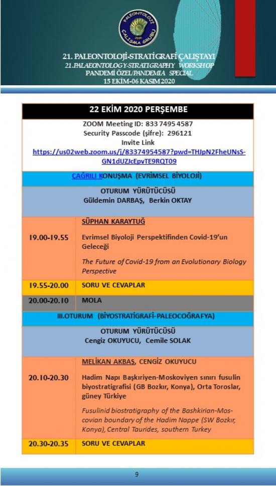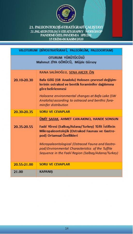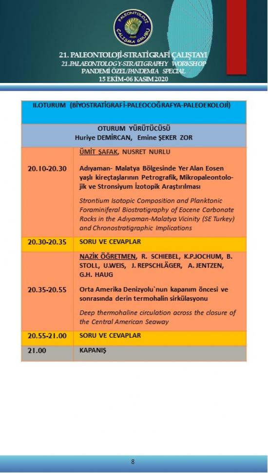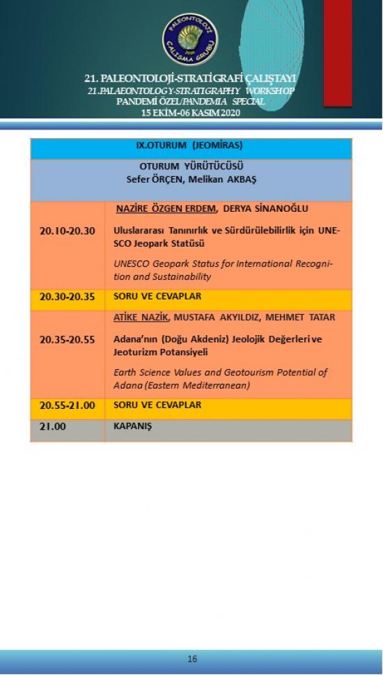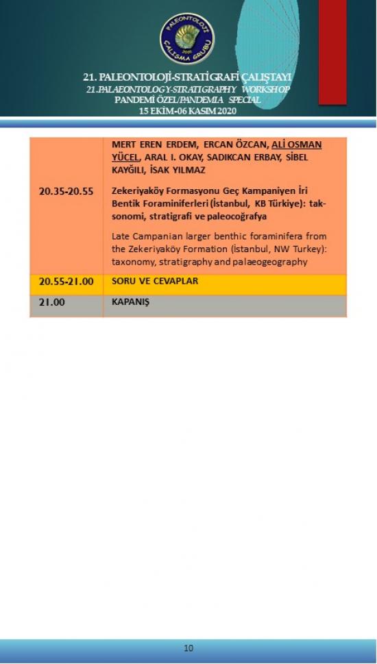 - 21. Paleontoloji-Stratigrafi Çalıştayı Pandemi Özel 15 Ekim-6 Kasım 2020 (Çevrimiçi)