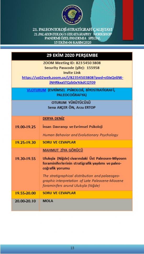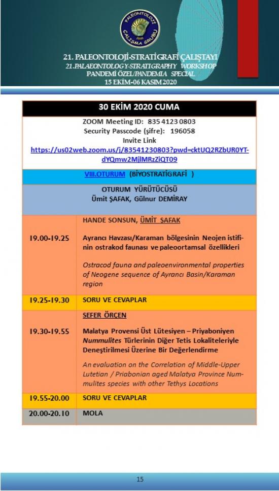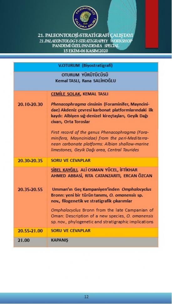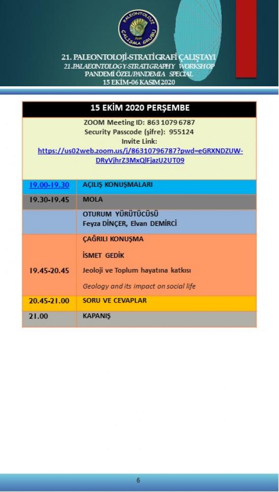 21. Paleontoloji-Stratigrafi Çalıştayı Pandemi Özel 15 Ekim-6 Kasım 2020 (Çevrimiçi)