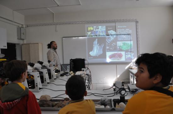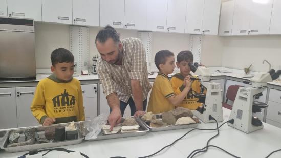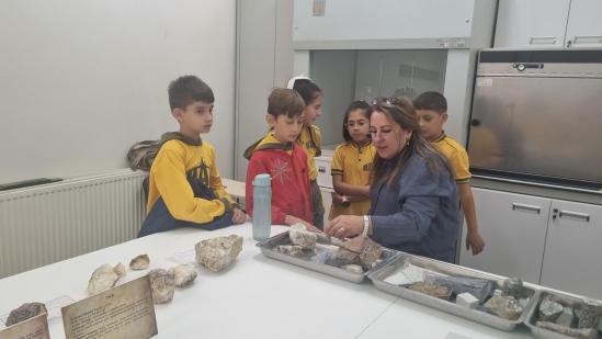 Hacı Asım Atabilen İlkokulu 4. Sınıf Öğrencileri, NEVÜ Jeoloji Mühendisliği Min-Pet. laboratuvarında kayaç, mineral ve fosillerin makro ve mikro örneklerini inceleme fırsatı buldu.