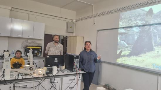 Doç. Dr. Ayşe ORHAN ve Arş. Gör. Mehmet Yasin CANBOLAT, yer kabuğunun yapısı, depremler, volkanlar, fosiller ve doğal oluşumlar hakkında öğrencilere önemli bilgiler aktardı.